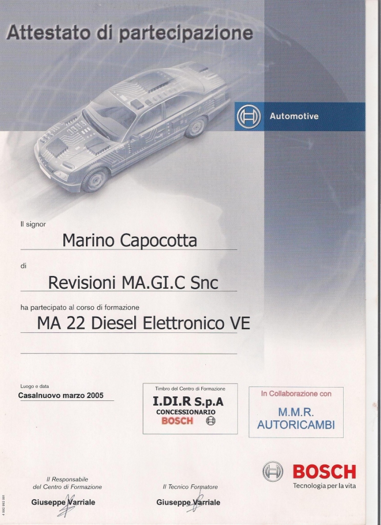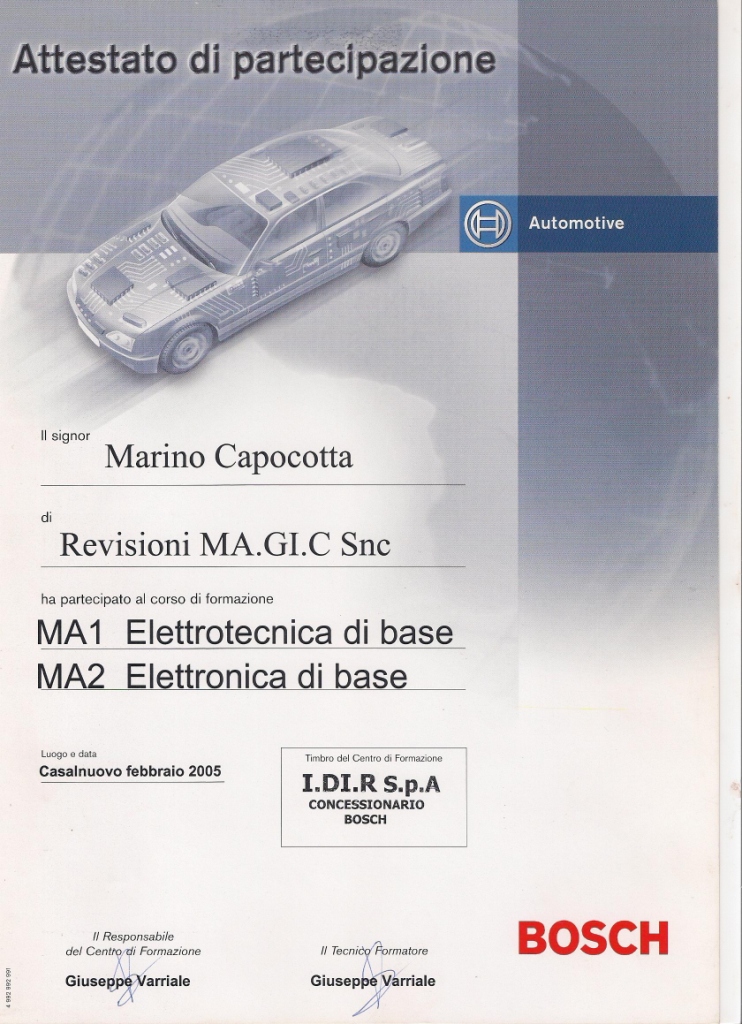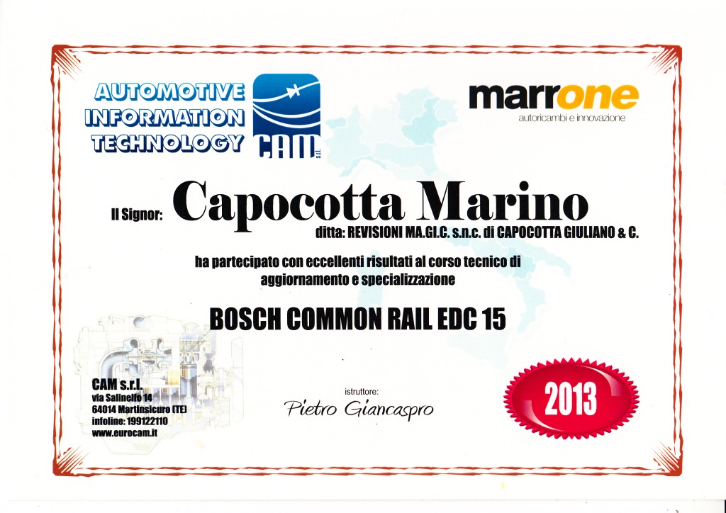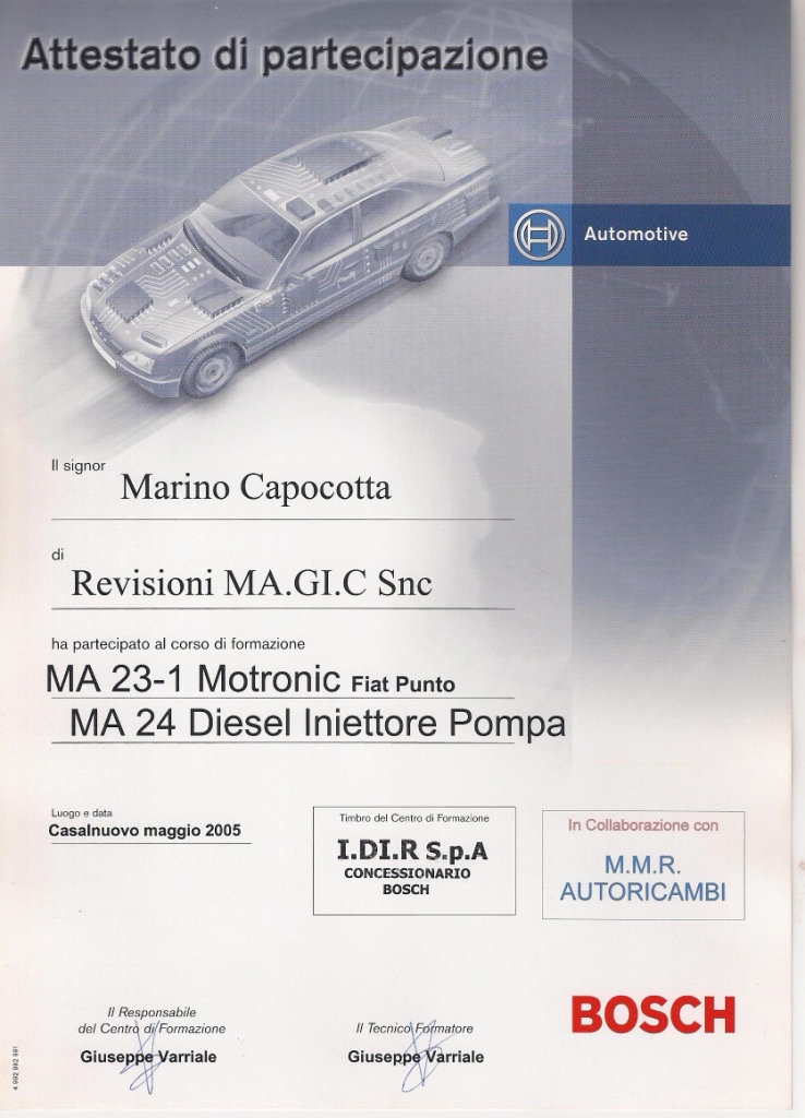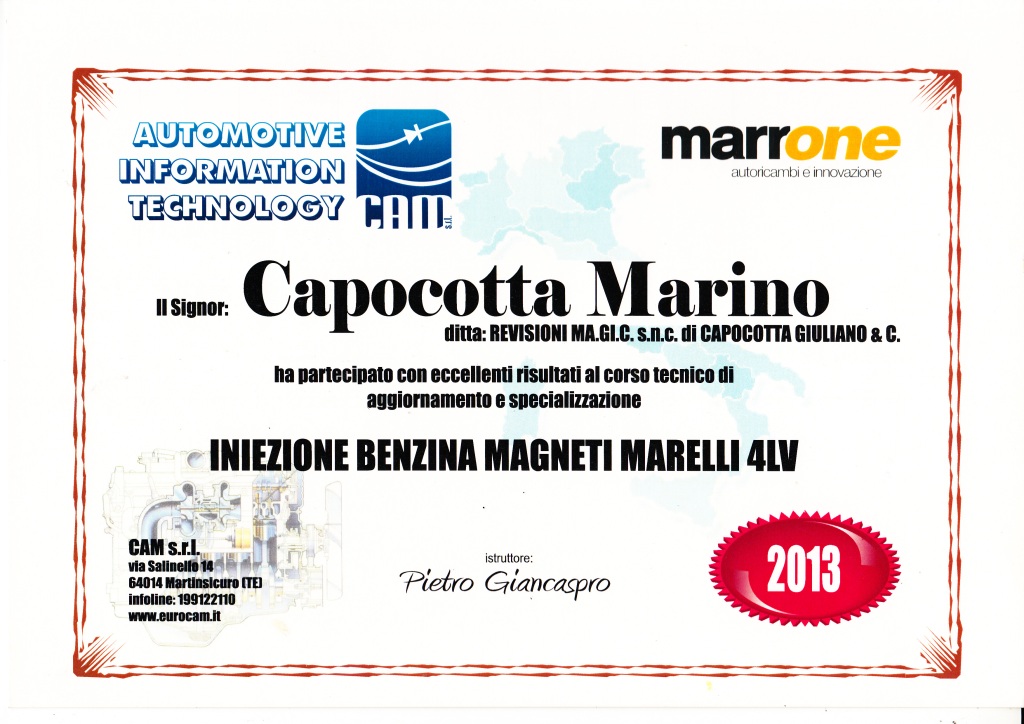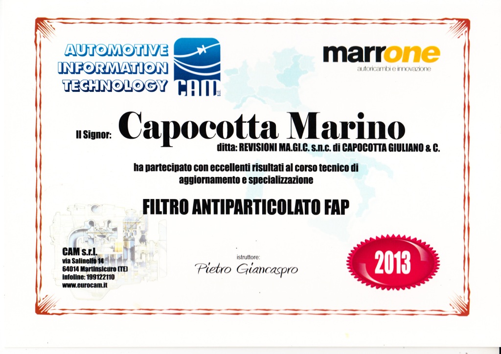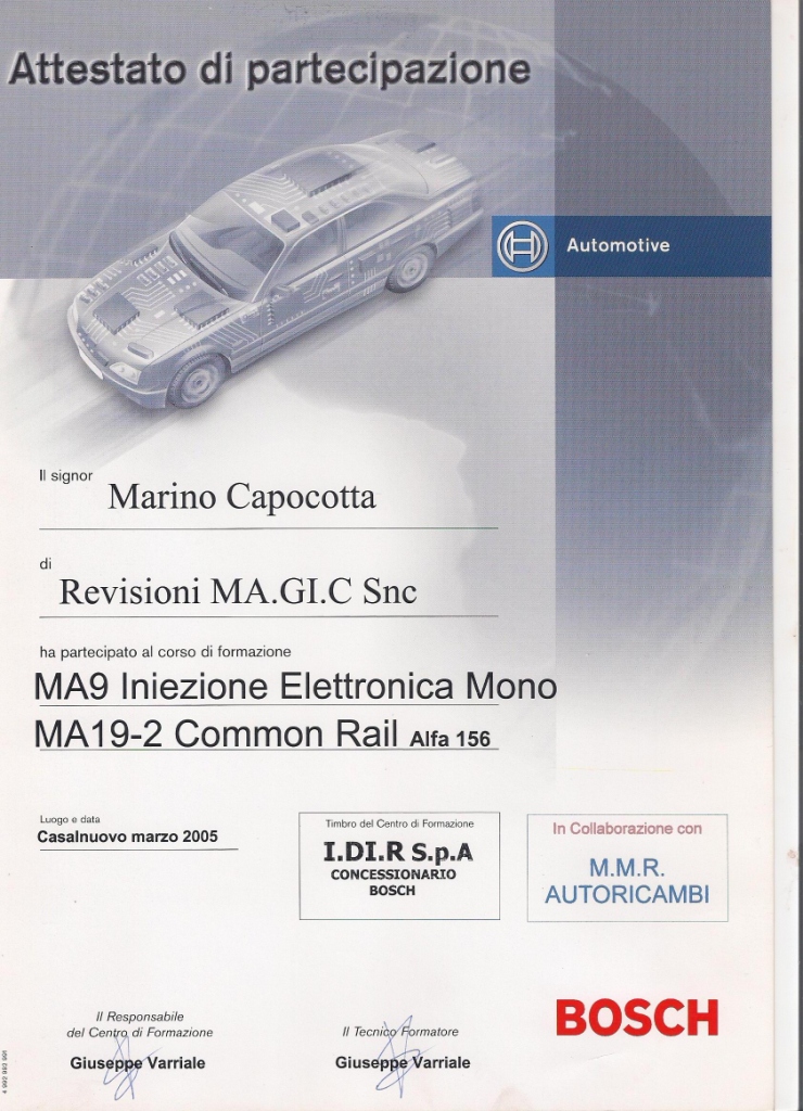 | 2014 | Corso di aggiornamento Responsabile Tecnico dei Centri Revisione |